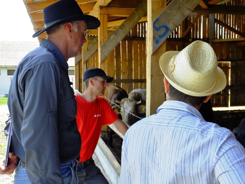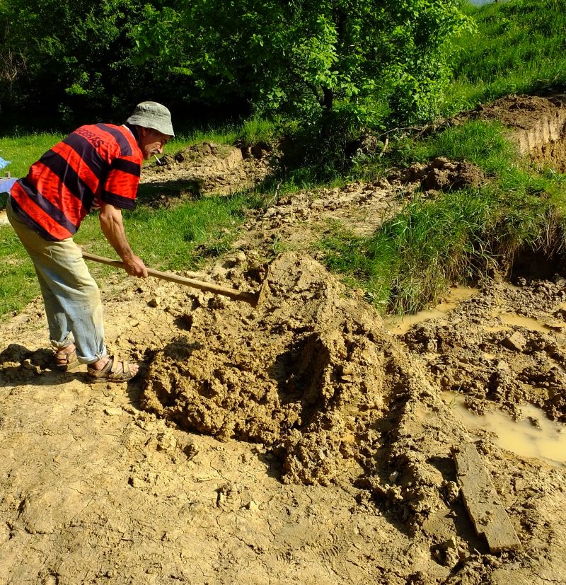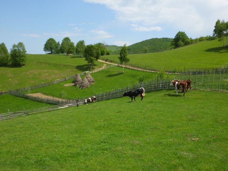 The two boys have to gather the four milk cows the family is keeping for another owner for the summer, and drive them to the community well for water. Paul, Daniel, and I decide to tag along. One boy walks in front of the cows while the other boy is trailing the docile beasts and we join the queue. The water source is perhaps a quarter-mile away where the system is housed in a tin building. A hollowed out log like those in Viscri is sitting outside the building for the shepherds to water their livestock. The cows drink a little water but they seem more intent in exploring their surroundings which sends one of the boys running downhill to corral the ring leader and herd the cows back to the water trough. When it is obvious that the cows have had their fill of water the youngsters begin herding the cows back home.