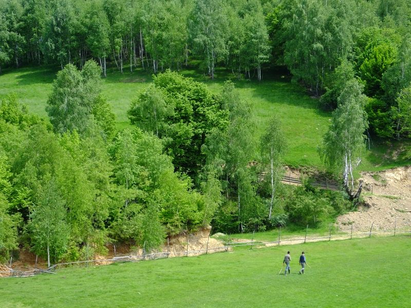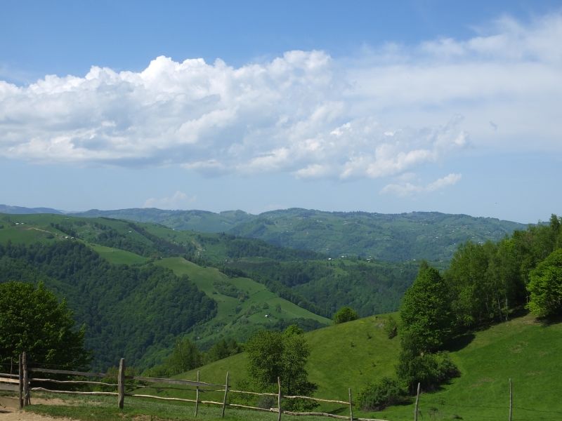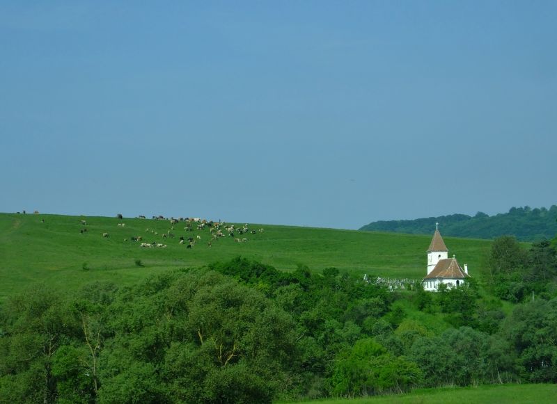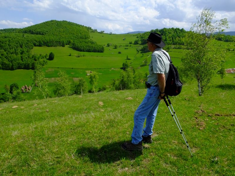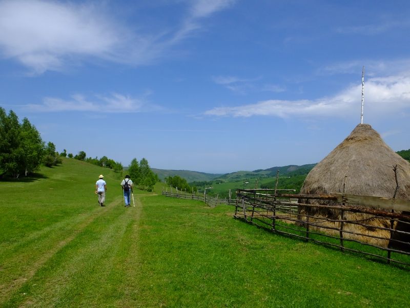 Daniel, Paul and I decide to hike farther down the road to enjoy the countryside and the spectacular views no matter which direction you look. From one hilltop we can see Jina in the distance, the white church shining like a beacon, as it sits on the highest point of the village. At another place on our trek, Daniel shows us the general area where a monastery sits hidden by the trees far below us. Turning back, we walk a different road where a valley spreads out below us sprinkled with houses and numerous conical haystacks. This country is just stunning.