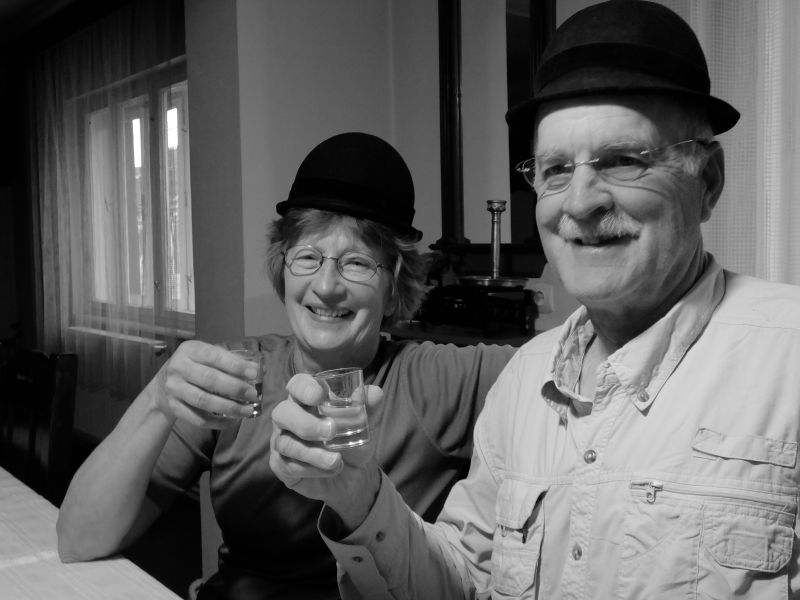 This evening at supper we naturally begin the meal with a brandy glass full of horinca. I have seen Daniel look down at his arm after he has taken a drink of the liquor before and declare that he is watching to see if the hair on his arm is standing up. I don’t know if the hair rising on his arm is a test of the quality of the horinca but I figured he was pulling our leg about his arm hair reacting to the liquor anyway. Tonight I look at his arm too and I’ll be darned if the hair doesn’t lift up. Yikes, that should tell you about the potency of this stuff. I also realized at the sheepfold that after I had a couple sips of horinca that the symptoms of my cold had lessened. Tonight, much to Paul’s astonishment, I drink about half of my glass of white lightning, (slowly) in hopes that it will alleviate my stuffy nose and head. Daniel assures me that horinca is very medicinal. I don’t know if it is coincidence or not but this is the most short-lived and mildest cold I can remember having.