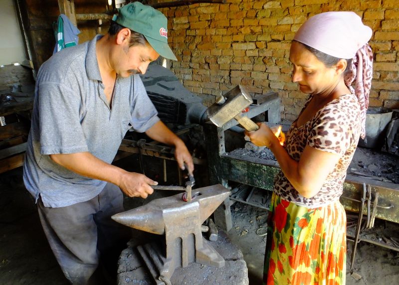 Paul and I both notice that Dinu used his pocket knife to cut up his food and he also impales the food on his knife point using it as a fork when eating the meat. Paul said the boys also used their pocket knives though I did not notice that. I did notice that the three would nearly cut off a bite of bread or piece of lard with their knives before finishing by biting the piece off with their teeth. It was really fascinating to watch this way of eating. When the six of us are nearly finished eating, Ileana puts a large bowl of the strawberries we brought on the table. Paul and I play it safe and don’t eat them but the other diners certainly enjoy them. However, someone makes a comment to Daniel about the condition of the berries. Daniel tells Paul and I that he told them that I was given the responsibility of carrying the strawberries so the bruised and smushed strawberries were my fault! Ha! When the rest of us have finished eating, Ileana sits down and has her lunch. I felt bad that she didn’t eat with us and I don’t know if that is the custom or if there just wasn’t room at the table for her.