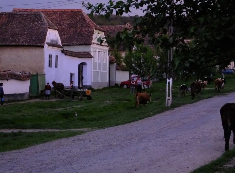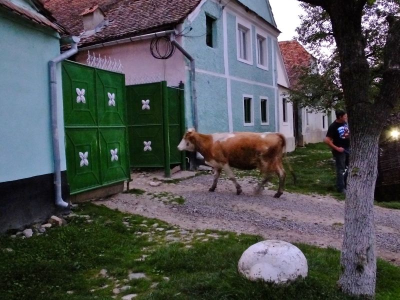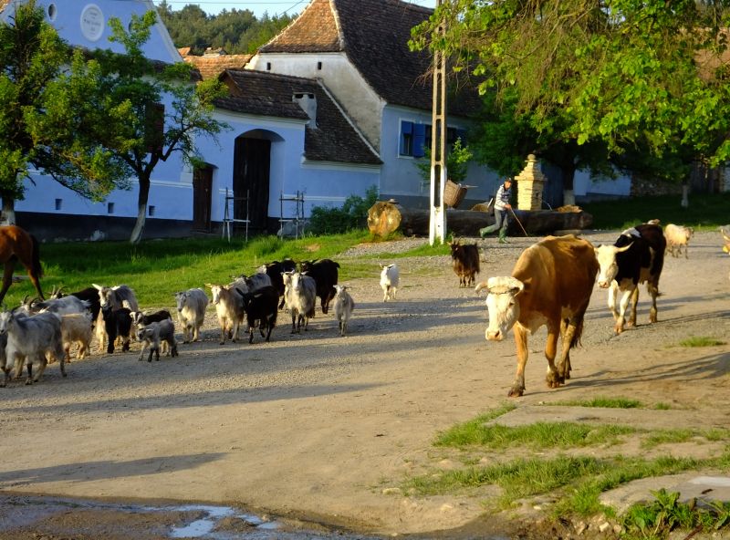 Dinu rises to his feet and tells Daniel he must take the sheep to water and invites us along. I decline the invitation saying that I am walked out, reminding my companions that we leave this special place to drive back to the guesthouse. Paul and Daniel forego the invitation too, saying it is time that we head back to the guesthouse. We do walk to the gate to watch the flock of sheep being driven out of the pasture by the boys while Dinu walks in front of his flock. Once the wooly sheep are out in the road the boys go back to the house while Dinu leads the sheep to water by himself. Daniel hollers at Dinu who turns to face us and we wave goodbye. Ileana accompanies us down the road for a few minutes and then we say thank you and goodbye to this friendly woman. What delightful people and what a wonderful way to spend our last full day in Romania!