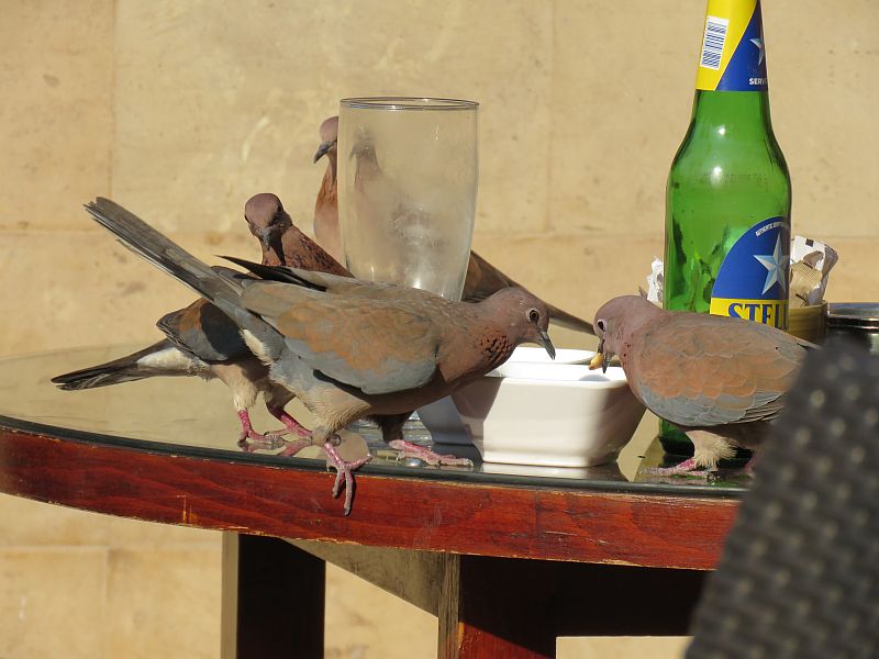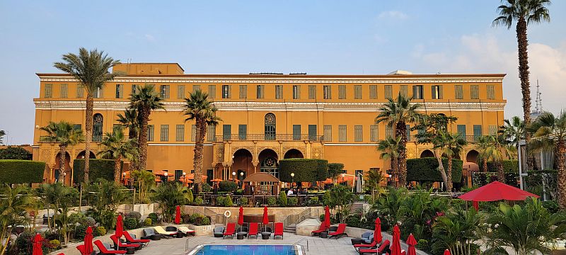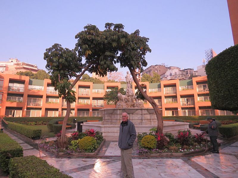When we return to the Winter Palace hotel, Paul and I take a much-needed nap. When we wake up, we decide to go down and check out the hotel courtyard. The manicured garden is absolutely beautiful. We find Jennifer lounging by the large swimming pool, so we sit down for a bit and just relax. I was delighted to see a Hoopoe while we were exploring the grounds. He was so busy probing the ground for worms he paid no attention to us. The low light of our courtyard tour was seeing several flamingos that are enclosed in a small wire pen.