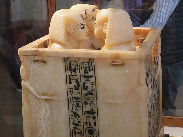 Hussein leads us on to the tomb of Tutankhamen, where he tells us the tomb robbers never found it because rubble had covered any signs of the tomb due to an earthquake (I think). Hussain also explains how Howard Carter finally figured out where Tut’s tomb was which is fascinating but too long of a story to write here. King Tuts’ tomb is small in comparison to the first tomb we were in, but the scenes painted on the walls of his tomb are amazingly vivid. King Tutankhamen’s mummy is on display, but I could have done without seeing Tuts’ mummy as it is not a pleasant sight.