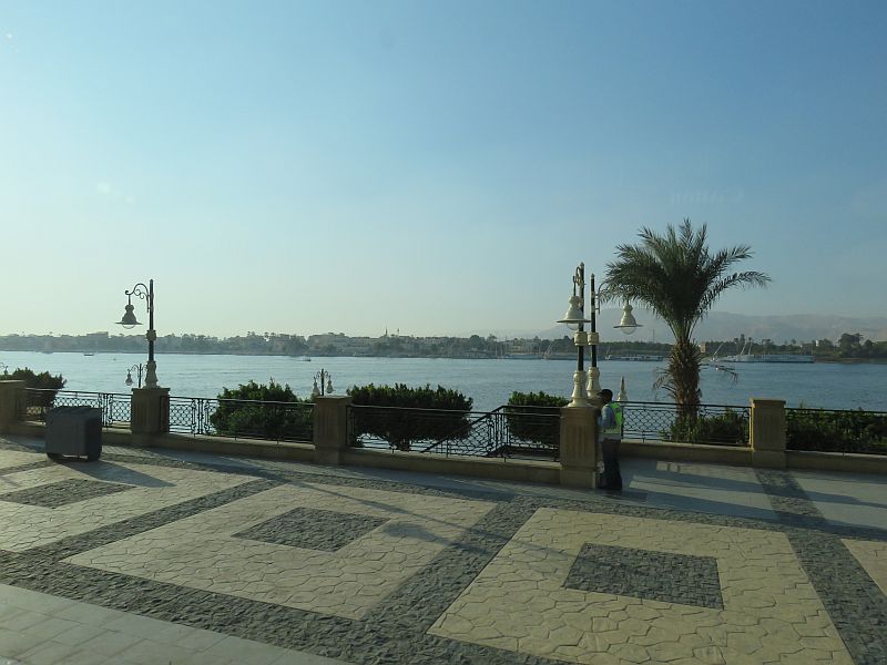 Paul and I ate breakfast this morning with another couple from our group who were kind enough to invite us to sit with them as all the tables were occupied. The buffet has a large variety of food, but it is not as expansive as Marriotts. Jennifer walks into the breakfast room about the time we have finished eating. Jennifer and some other members of our group left early this morning to go on the optional hot air balloon ride. They had to take a boat across the Nile, continue by car for quite a distance and then hope that the wind was cooperating when they arrived at the balloon launch. Fortunately, the wind was fine and Jennifer and the others that went raved about the experience of their hot air balloon ride. Paul and I opted not to go because we had taken a hot air balloon ride while on one of our earliest, maybe our first trip to Africa, and we were happy with that memory.