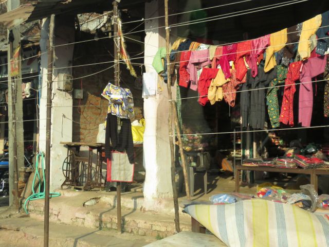 There are little shops everywhere that sell food, spices, clothing, jewelry, and on and on with the wares for sale spilling out onto the sidewalks. The smell of cooking food mixed with car fumes adds to the overload to your senses. Constant noise in your ears, incredible colors and activity for your eyes, and the smells of a bazaar that offers a variety of goods is overwhelming. Paul asks our guide at one point how the store owners can get everything sold when so many people are offering the same items in their shops. I am not sure we really got an answer, but when you have 25 million people living in Delhi, I suppose that explains it.