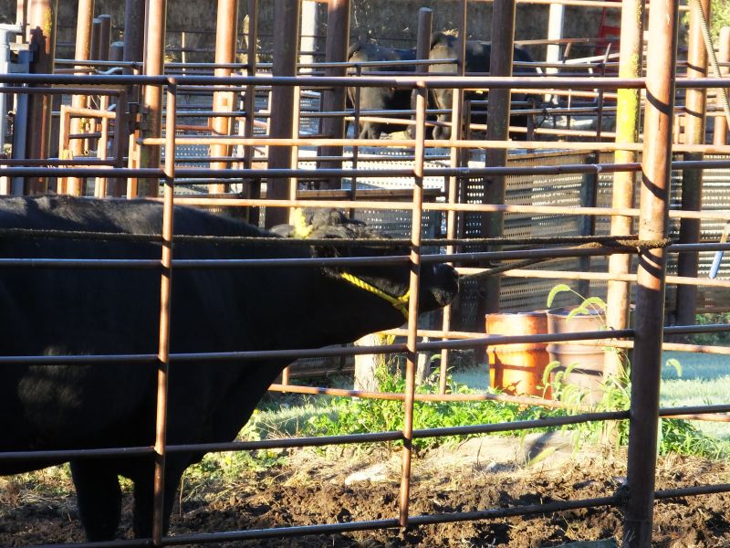There is a catch pen a quarter of a mile away so Paul and I grab the calf, much to the disapproval of the calfnapper, and load him in the back of the Ranger. We make sure both cows know where the calf is, then with Paul holding onto the calf and me driving the side-by-side we make our way towards the pen. 324 follows dutifully behind the Ranger but 298 has other ideas. The calf stealing cow runs in front of the Ranger which causes me to come to a stop so I don’t run into her. The old rip does this time and again, occasionally lowering her head as if she is trying to pick a fight with the Ranger, which causes me to hurl some unkind words at the thieving cow. We finally arrive at the corral and entice the two cows into the small loading pen by placing the calf in that pen. Cutting 298 into a side pen is no easy task because she is determined to stay with “her” calf.
