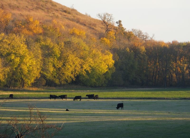 I take the Ranger and head back to Milton’s place where I search the area where we first found the two cows chasing after the bewildered calf. I slowly and carefully drive the Ranger back and forth peering into the rank foxtail that has grown up in the brome field. I don’t find the calf so where do I look now I remember what when I checked this bunch of cows yesterday I was short several cows. I finally found them on top of the small wooded hill where the cows were munching on acorns. This year the acorns were thick and our cows were crazy for the nuts feasting on them as if they were candy. If we were short on our count in any of the herds, we would immediately head for the timber and look for oak trees where more often than not we would find the missing bovines crunching on acorns! Anyway, I distinctly remembered that 324 and her calf were with several other cows on this hilltop snuffling around the base of oak trees for acorns. I remembered 324 and her calf because we only had a couple of calves in this group so far. Hmm perhaps this is where 298 got confused and laid claim to 324’s calf.
